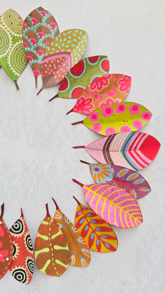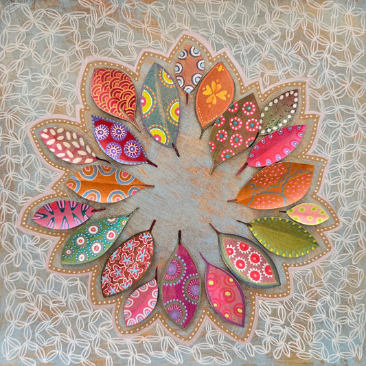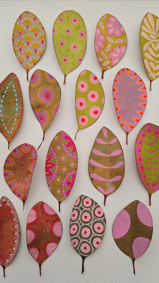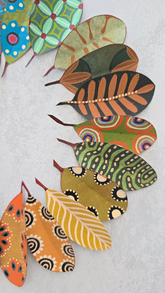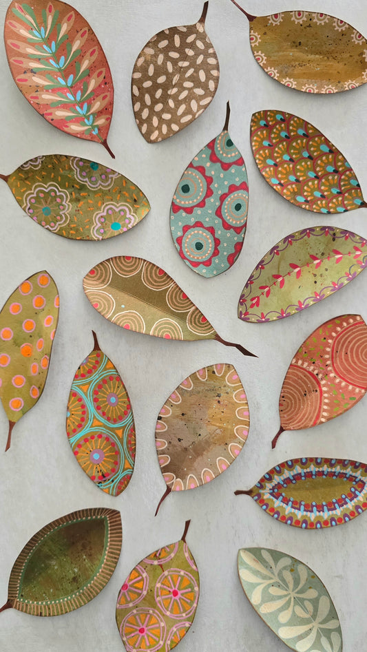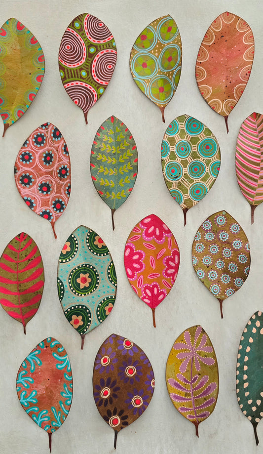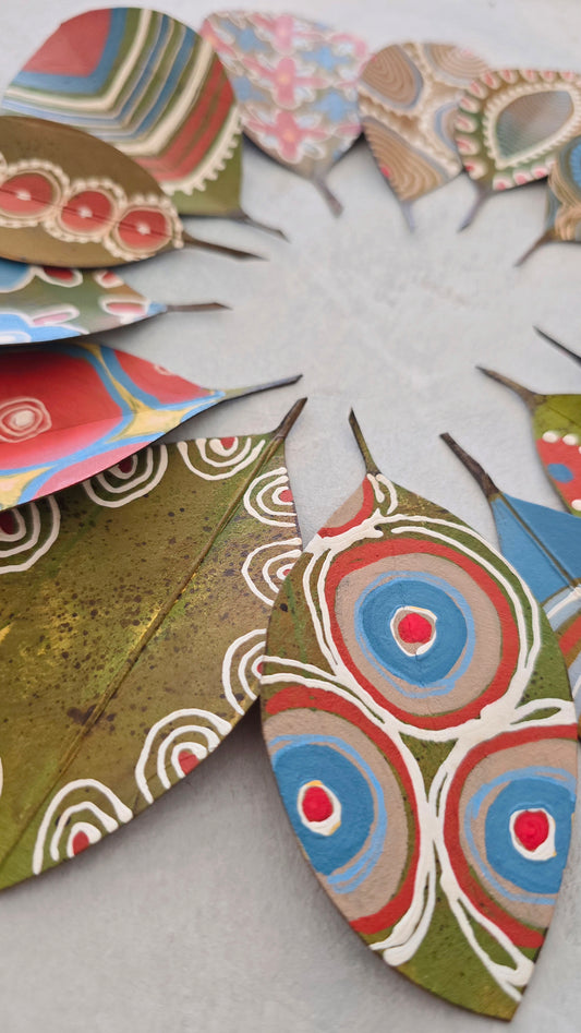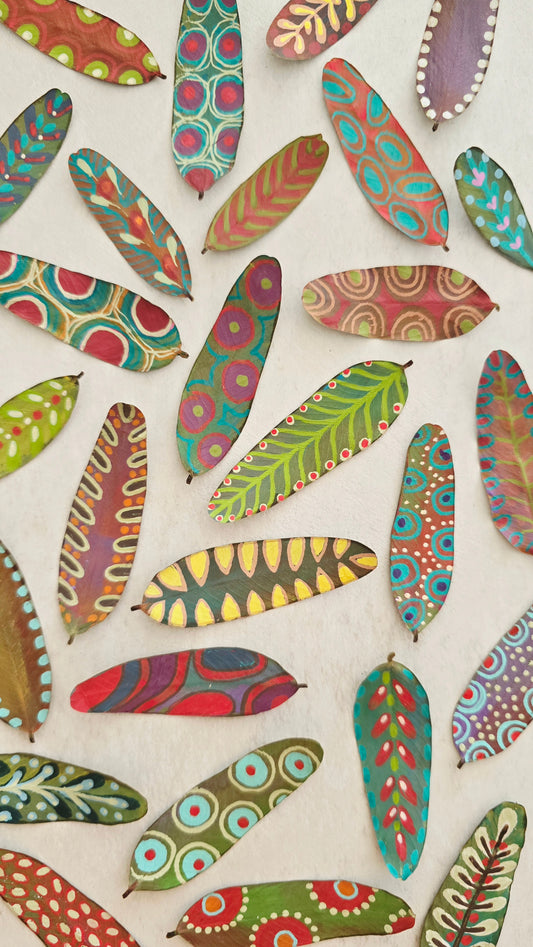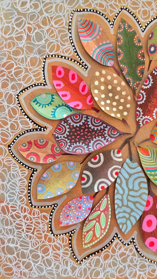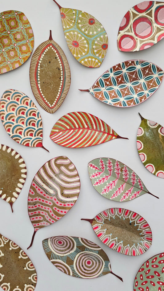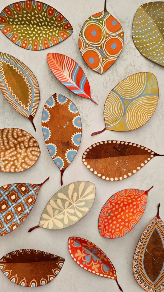 Inspirado en la naturaleza y el arte aborigen, cada pieza esta decorada y recortada a mano, es única y forma parte de una serie limitada.